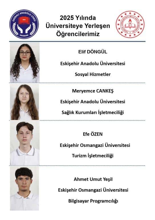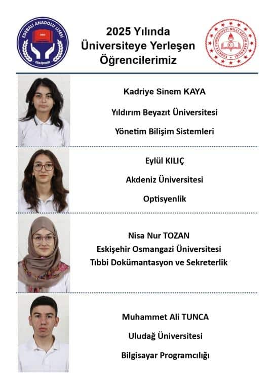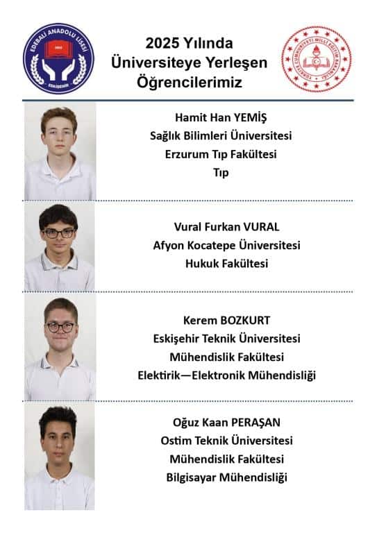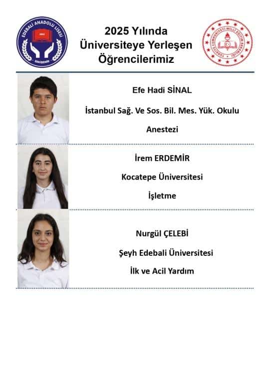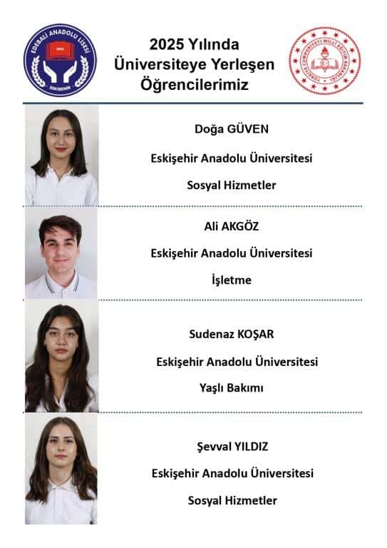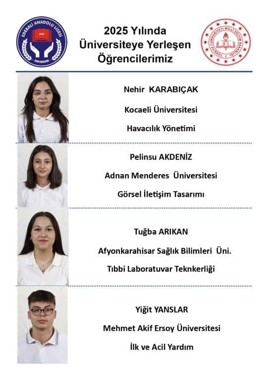2025 Yılında üniversiteye yerleşen öğrencilerimizin listesi için