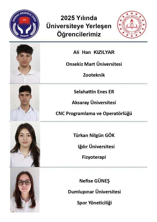 2025 Yılında Üniversiteye Yerleşen Öğrencilerimiz